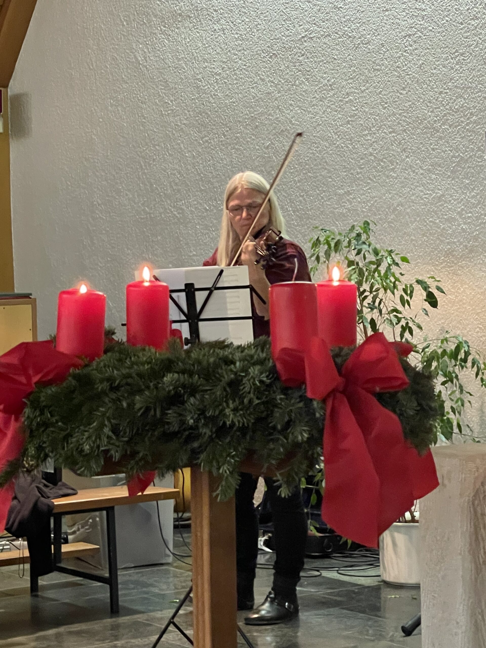 Für die musikalische Unterstützung sorgten allen voran Frau Dr. Birgit Fischer auf Ihrer Bratsche und Frau Julis Ellis und Duy Trinh (Q12) auf der Gitarre.