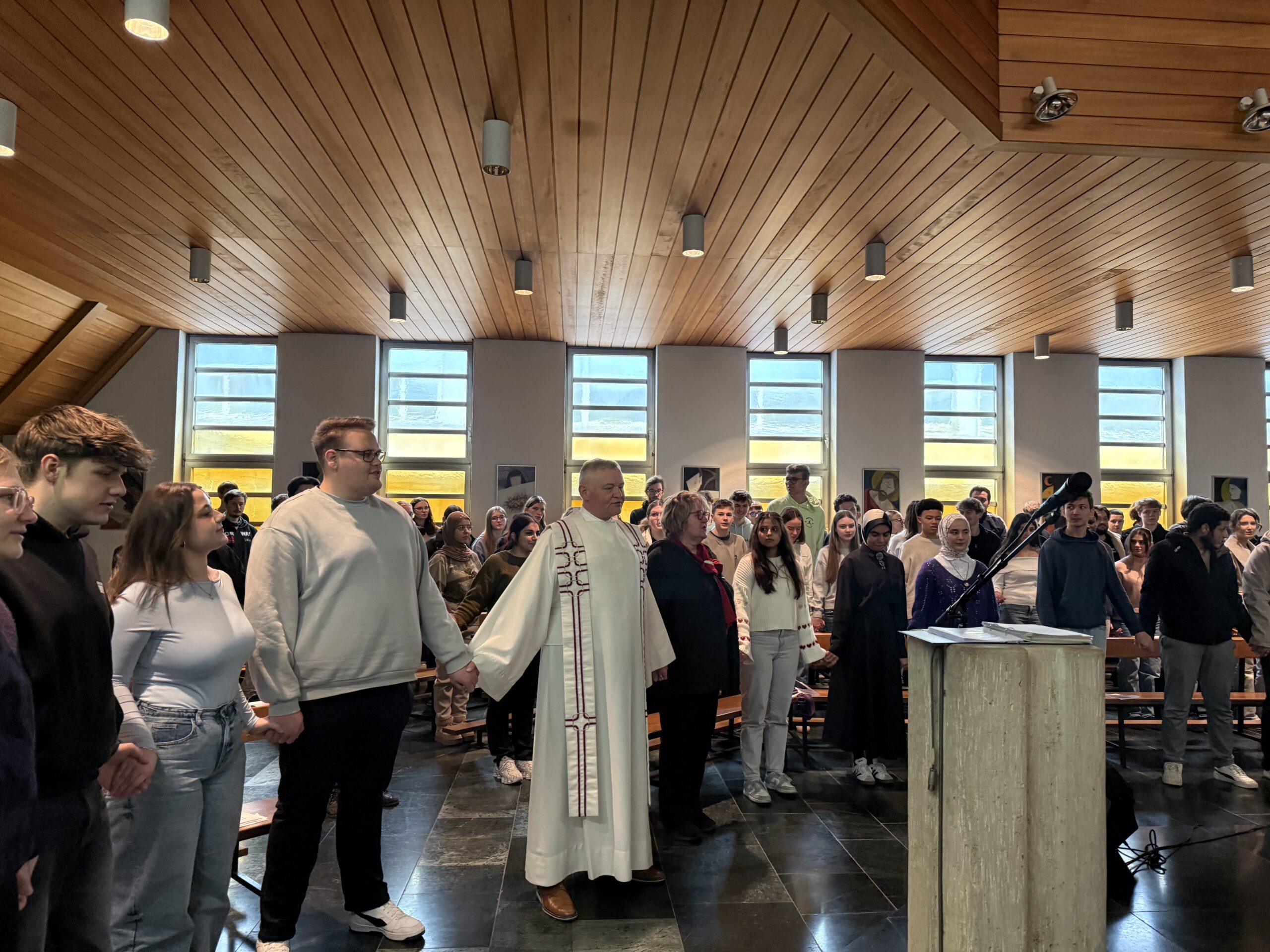 „Es gibt Momente, die beginnen so leise, dass man sie fast übersieht. Sie kommen nicht mit Glanz, nicht mit Feuerwerk, sondern eher wie ein Atemzug, den man erst bemerkt, wenn er warm wird: Sternstunden“. Dieser Auszug aus dem selbstgeschriebenen Gedicht von Marie Reinhardt (Q12) gibt die Stimmung bei unserem diesjährigen Gottesdienst sehr gut wieder. Wie immer konnten wir auf Pater Dieter Putzer SDB zählen, der selbst am Theresianum sein Abitur gemacht hat und dessen Thema „Sternstunden“, die Schülerinnen und Schüler sehr inspiriert hat.